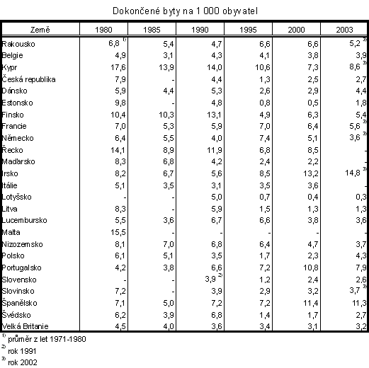 V roce 2004 bylo dokončeno 32 268 bytů a bylo tak dosaženo téměř stejné úrovně jako v roce 1992, což představuje tak další etapu oživení bytové výstavby. Nicméně vrcholu v sedmdesátých letech bytová výstavba stále ještě nedosahuje. Také v mezinárodním srovnání Česká republika v intenzitě bytové výstavby za většinou vyspělých západoevropských zemí zaostává (viz. kap. 6).