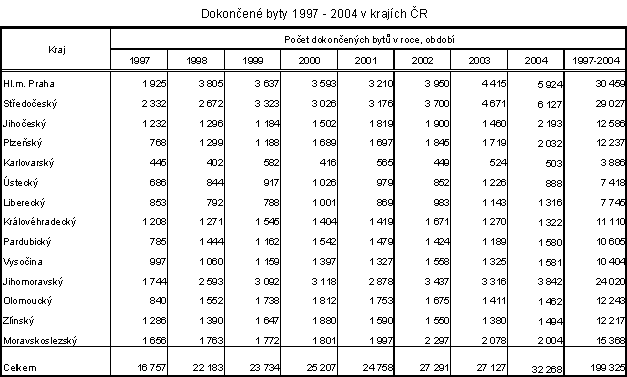 Analýza bytové výstavby v roce 2004