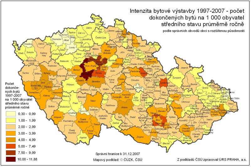 - pokračoval proces tzv. suburbanizace, tj. směřování bytové výstavby do okrajů větších měst (Praha, Brno, Plzeň, Ostrava, Olomouc, Liberec);