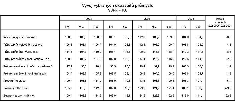 Analýza vývoje průmyslu ve 2. čtvrtletí 2005