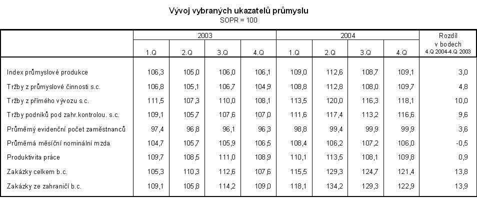 Analýza vývoje průmyslu - 4. čtvrtletí 2004
