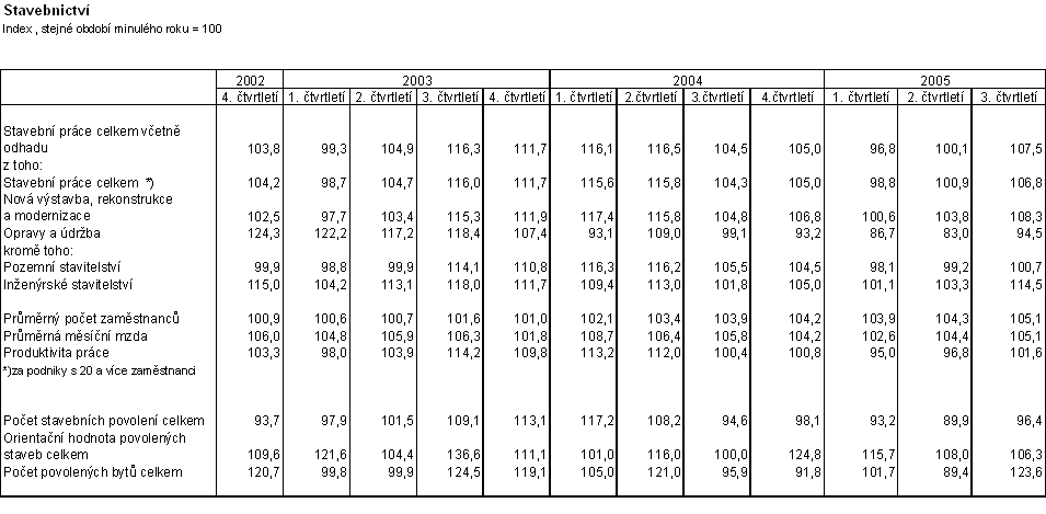 Ve 3. čtvrtletí 2005 ve stavebnictví dominovaly: