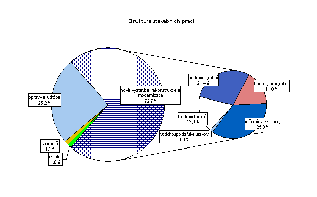 - inženýrské stavby 25,8 % (silnice, dálnice, mosty, tunely)