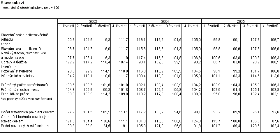 Analýza vývoje stavebnictví - 4. čtvrtletí 2005