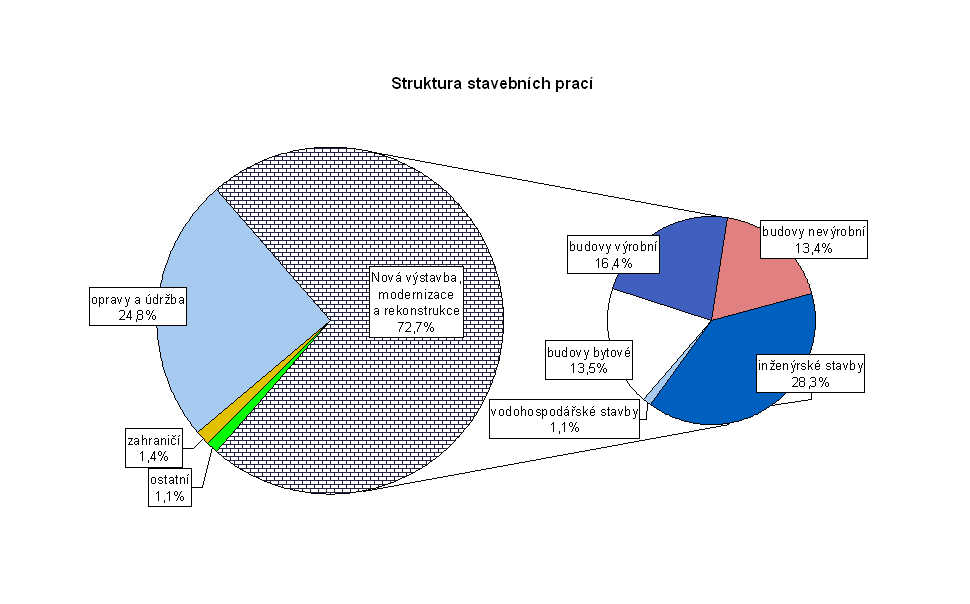 - inženýrské stavby 28,3 % (silnice, dálnice, mosty, tunely)
