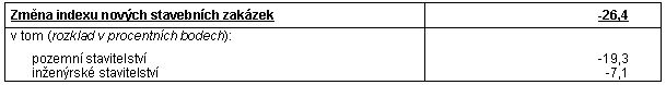 Celková hodnota nově uzavřených stavebních zakázek v tuzemsku meziročně klesla o 26,4 %.