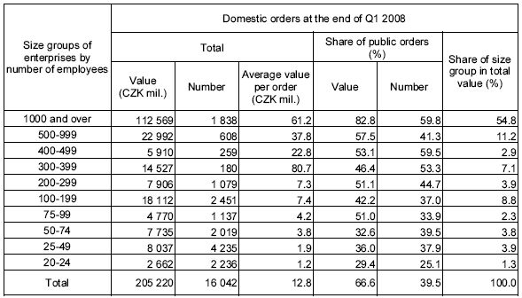 In Q1 2008 the total value of domestic new construction orders reached CZK 62.0 billion and increased by 23.6% year-on-year. At the end of Q1 2008 observed construction enterprises recorded 16.0 thousand domestic orders worth CZK 205.2 billion.