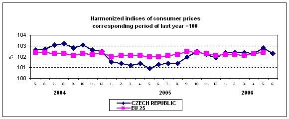 From January to September 2005, HICP figures for the Czech Republic were under the EU average; from October to December they were almost the same. In 2006, the Czech HICP was slightly higher than HICPEU25 so far.