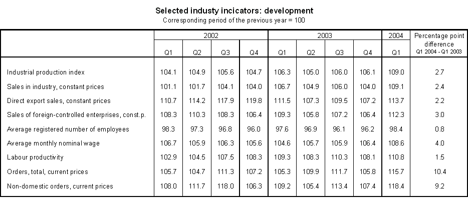 Q1 2004 sales in industry (constant prices) were 9.1% up year-on-year.