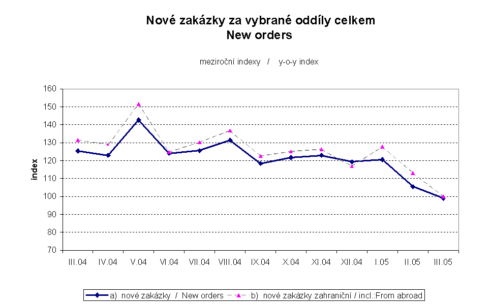 In the same quarter, new non-domestic orders worth CZK 234.4 billion were signed. Their volume was 12.6% up on Q1 2004.