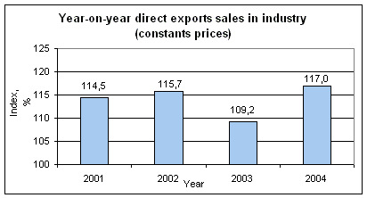 The average growth rate of direct export sales in January-April 2004 and from 1 May 2004 (after the accession to the EU) stood at 112.9% and 119.0%, respectively.