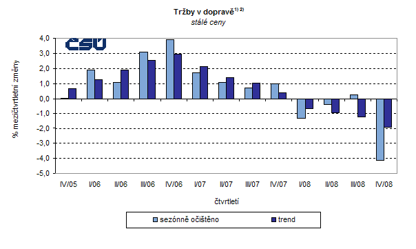 2) Z důvodu organizačních změn v ČD byl pro přepočet do stálých cen použit ve 4. čtvrtletí 2008 implicitní deflátor