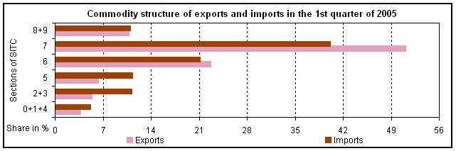 A closer look at the development of external trade in the 1st quarter 2005 shows that: