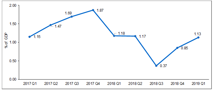 Seasonally adjusted balance of the general government sector, Q1 2017 – Q1 2019