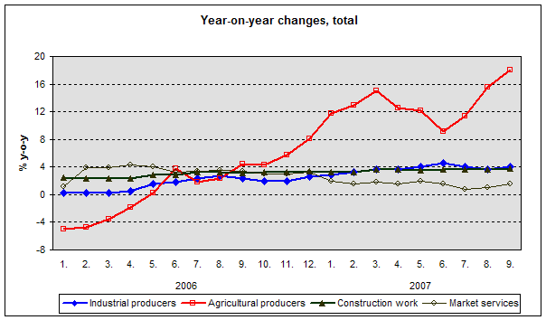 In Q3 2007 compared to Q2 2007 the prices of industrial producers increased by 0.8%.
