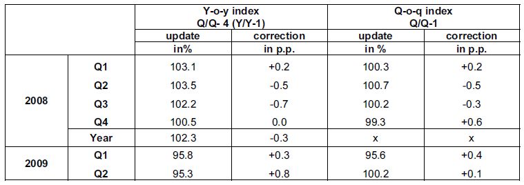 In compliance with the entire system of annual national accounts published according to the Catalogue of Publications on 1 October on the CZSO web site, the corresponding quarterly indicators were updated. The scope of GDP updates and corrections on a quarterly basis compared with data published on 8 September is illustrated in the following table: