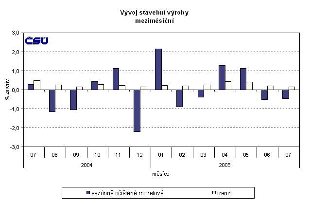 Červencem 2005 skončilo období, ve kterém byla vykazovaná data o stavební produkci ovlivněna změnou DPH u stavebních prací (vyjma bytové výstavby) od 1. 5. 2004.