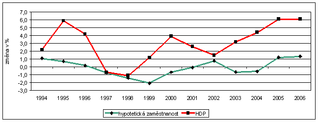 Graf č. 5 Tempo růstu HDP a hypotetické změny zaměstnanosti