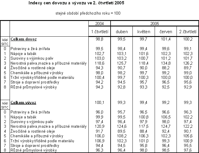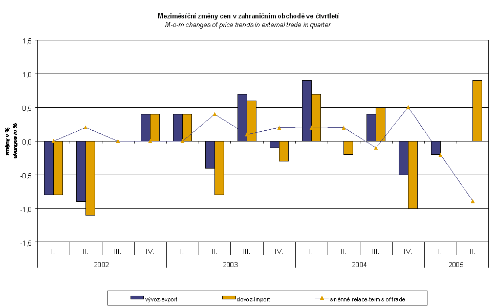 Vývoj indexů cen v zahraničním obchodě ve 2. čtvrtletí 2005