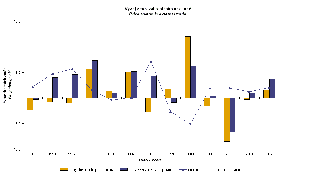 Vývoj indexů cen v zahraničním obchodě v roce 2004