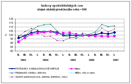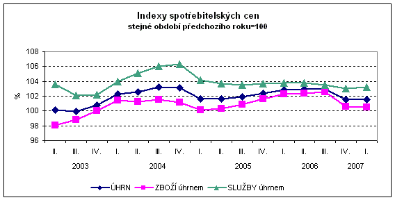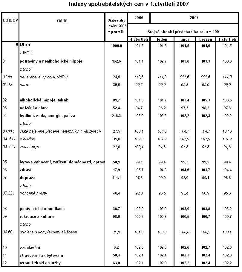Vývoj indexů spotřebitelských cen - 1. čtvrtletí 2007