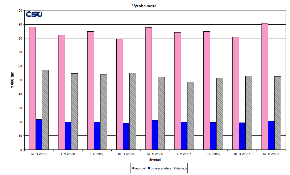 Ve 4. čtvrtletí 2007 se výroba masa celkem zvýšila meziročně o 2,0 %. Nákup mléka stoupl meziročně o 3,6 %.