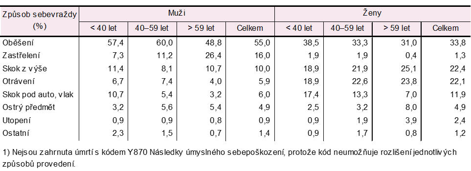 Sebevraždy podle způsobu provedení