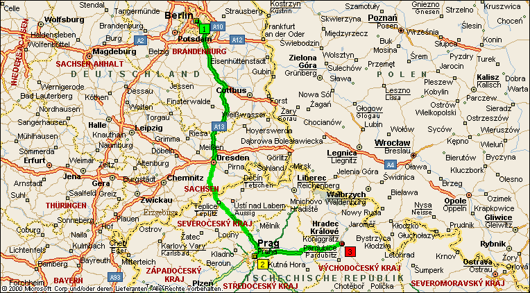 | 13:21 | 341,0 | 2 Bei Prag, zurück Nord zu örtliche(r) Straße(n) Teilstrecke 1,3 km |