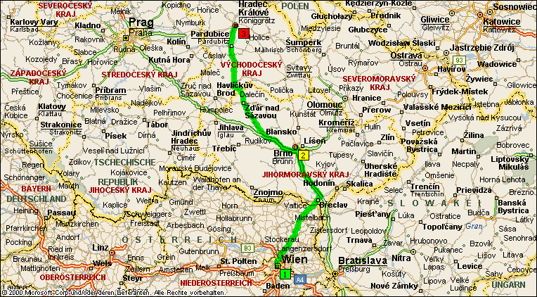 | 11:06 | 137,6 | 2 Bei Brno, zurück Süd zu örtliche(r) Straße(n) Teilstrecke 60 m |