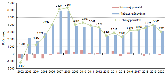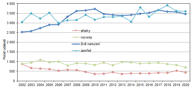 Zdroj dat: Demografická statistika – výsledky zpracování statistických hlášení řady Obyv; rozvody – Informační systém Ministerstva spravedlnosti ČR; stěhování – Informační systém evidence obyvatel (Ministerstvo vnitra ČR); Cizinecký informační systém (Ředitelství služby cizinecké policie).