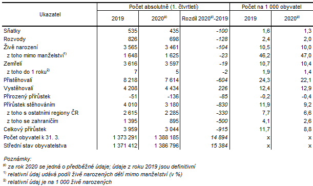 Pohyb obyvatelstva – 1. čtvrtletí 2020