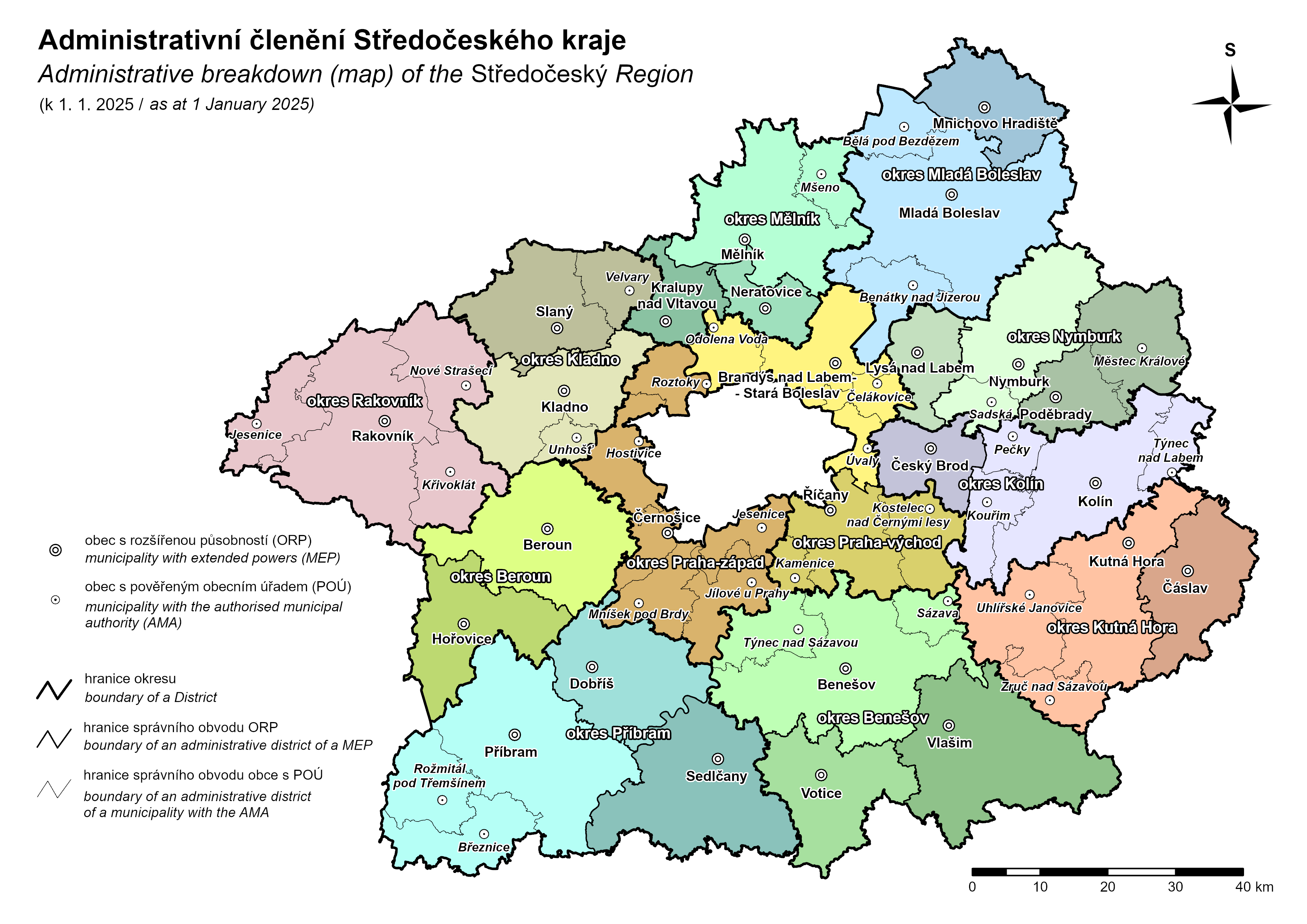 Administrativní členění Středočeského kraje k 1. 1. 2025