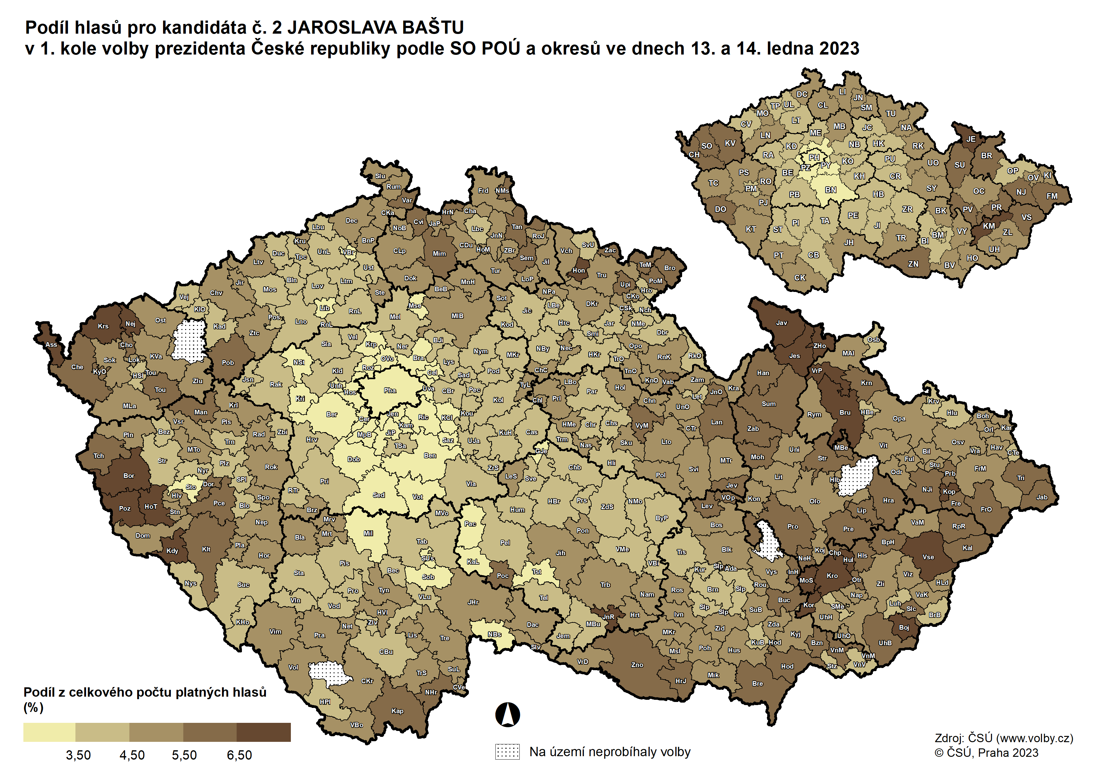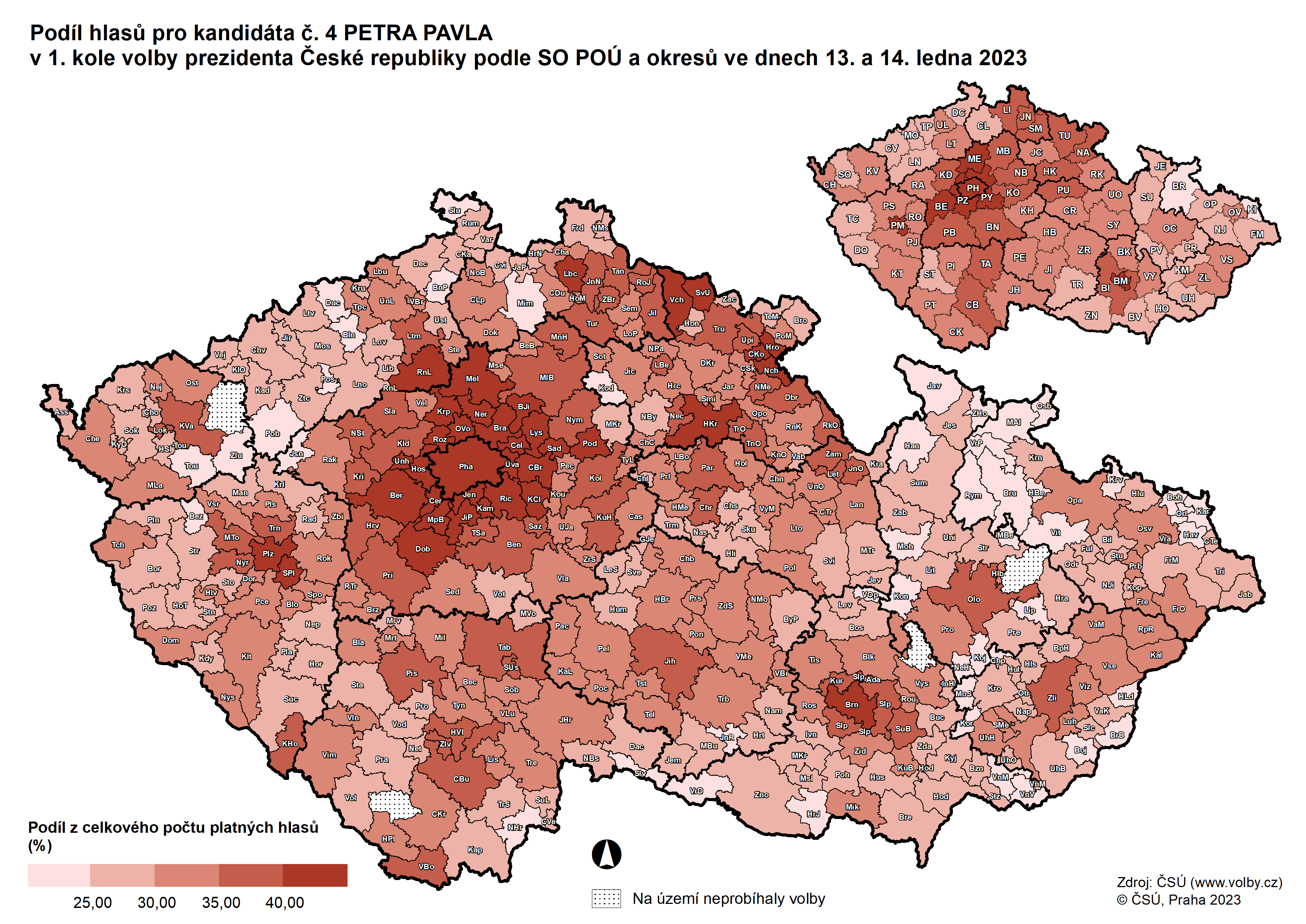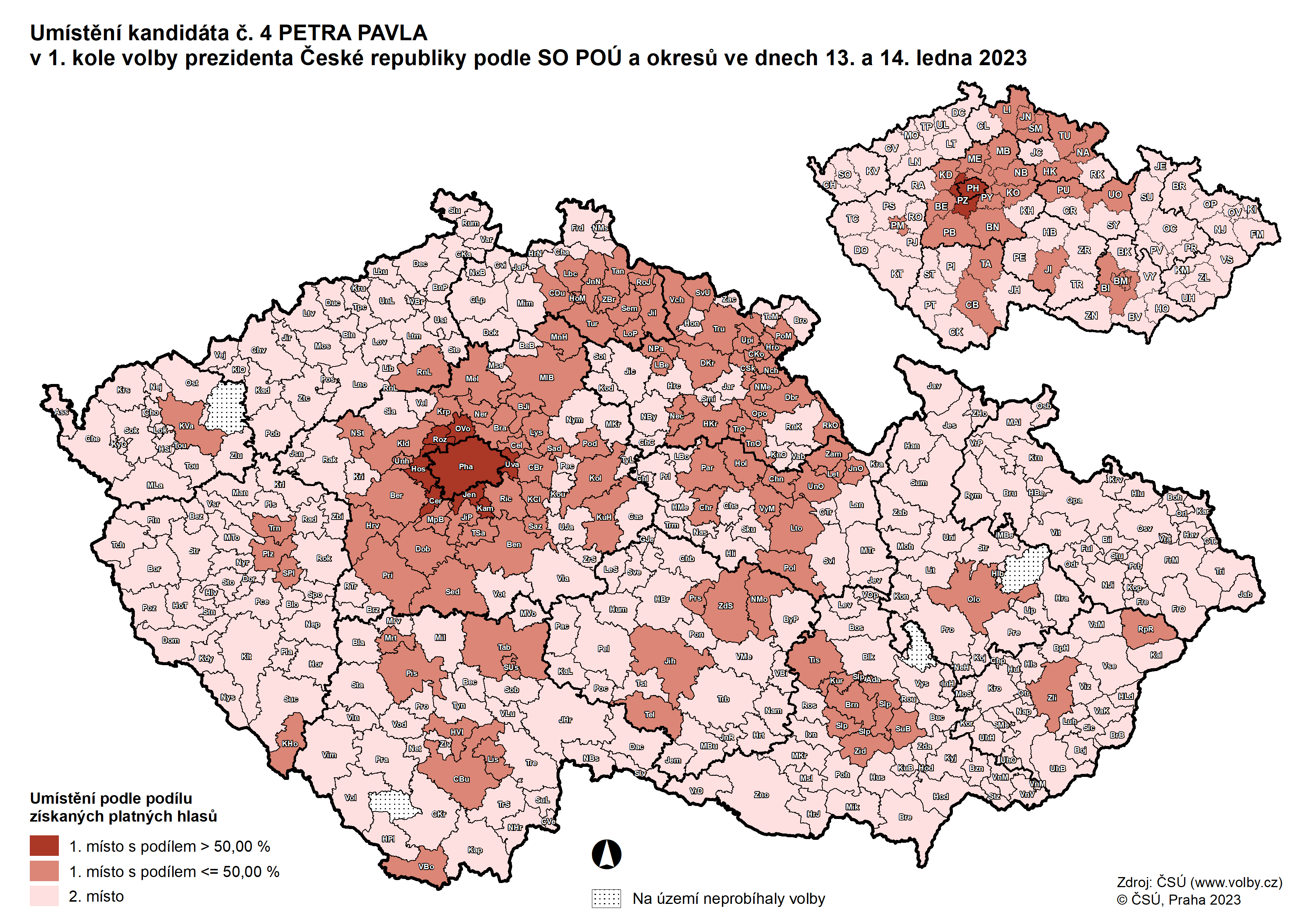 - Umístění kandidáta č. 4 Petra Pavlav 1. kole volby prezidenta ČR podle SO POÚ a okresů ve dnech 13. a 14. ledna 2023