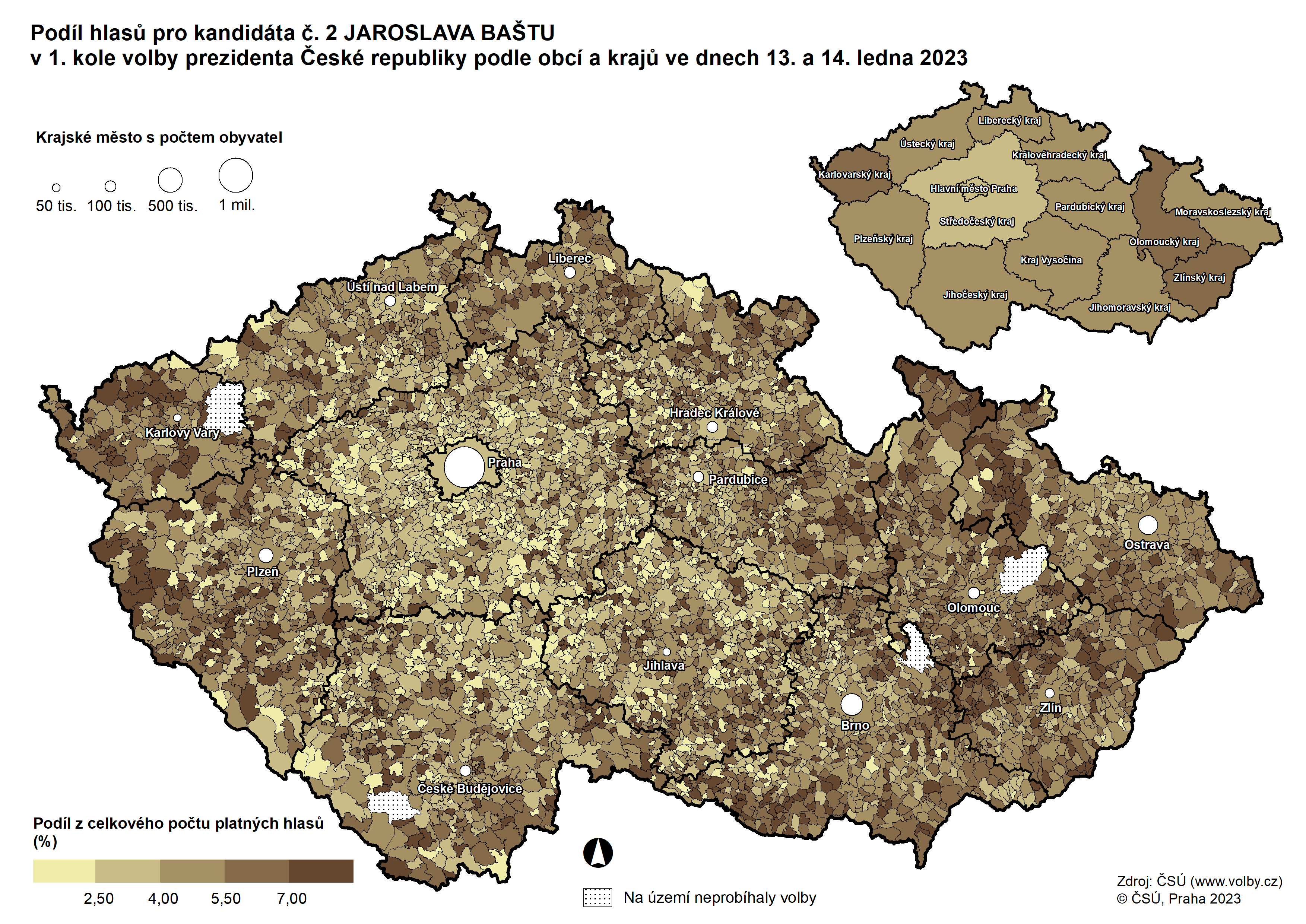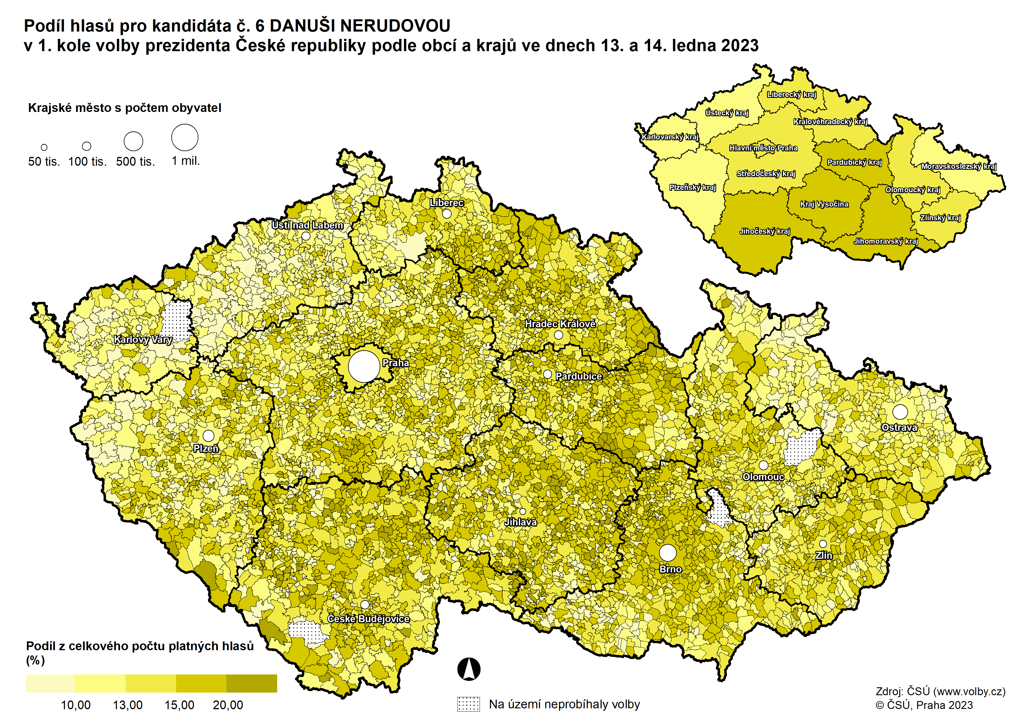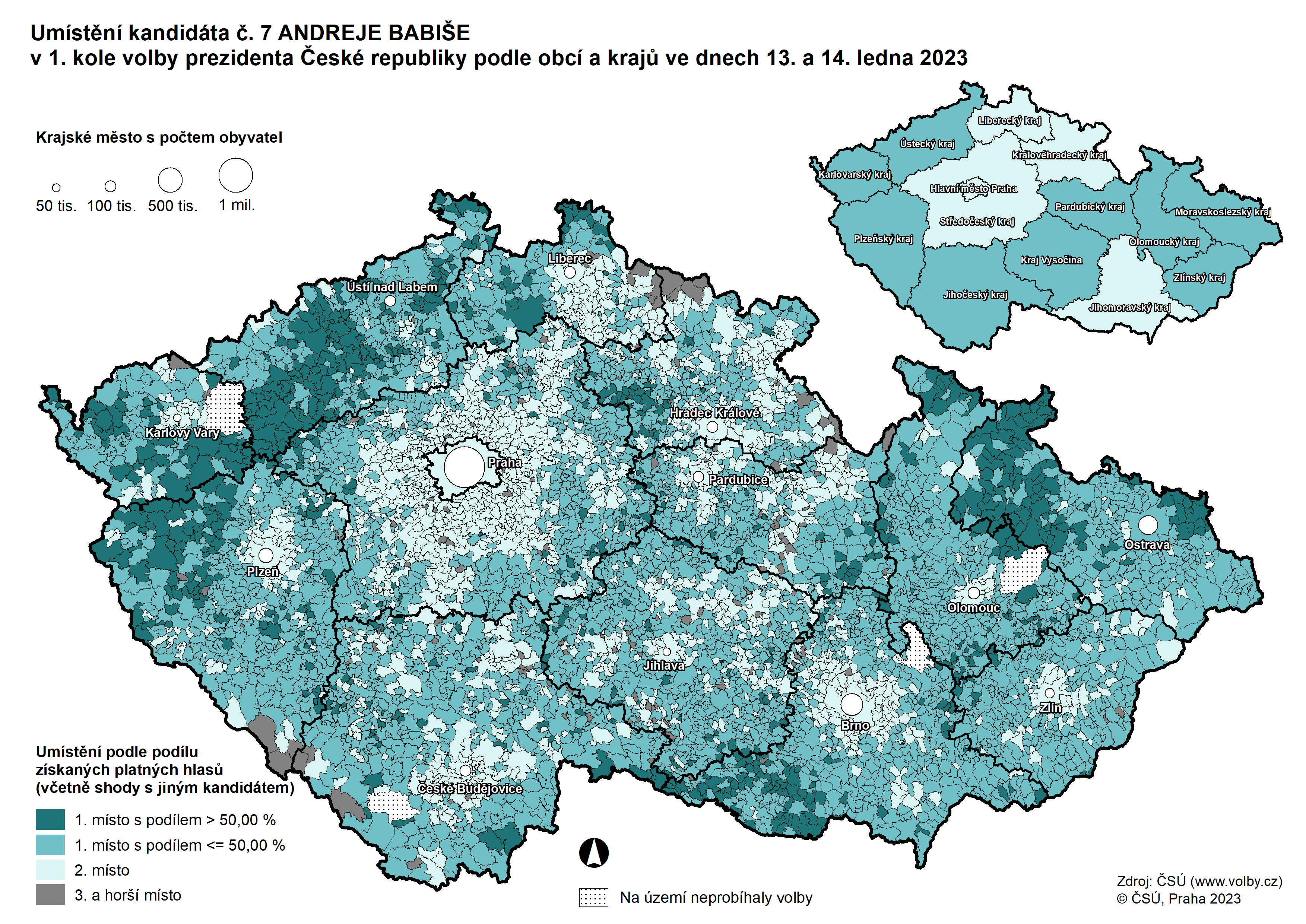 - Umístění kandidáta č. 7 Andreje Babišev 1. kole volby prezidenta ČR podle obcí a krajů ve dnech 13. a 14. ledna 2023