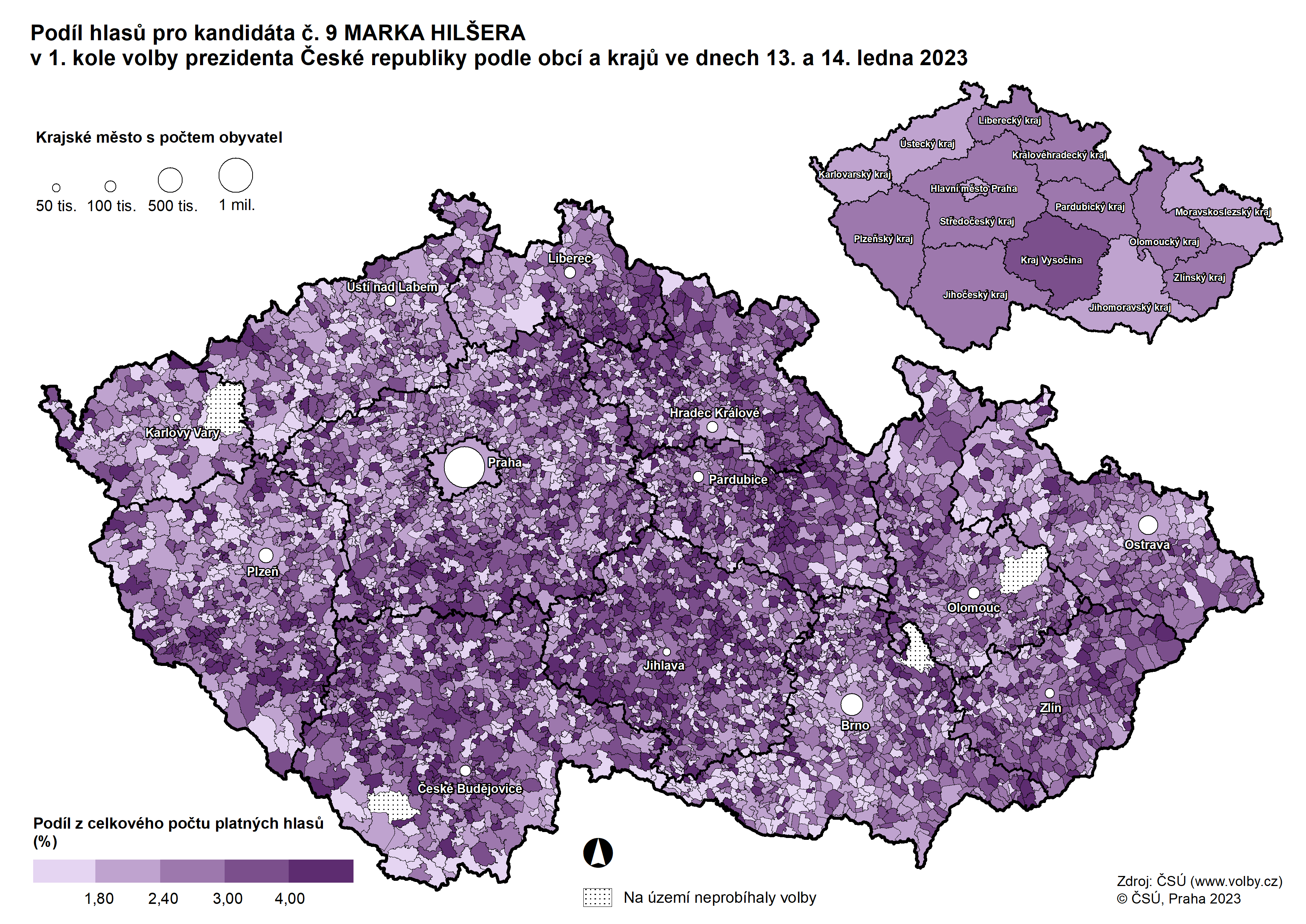 podle obcí a krajů- Umístění kandidáta č. 4 Petra Pavlav 1. kole volby prezidenta ČR podle obcí a krajů ve dnech 13. a 14. ledna 2023