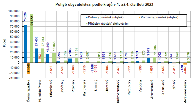 Pohyb obyvatel v roce 2023 v Ústeckém kraji (předběžné výsledky)