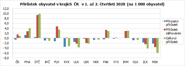 1. pololetí 2020: na Vysočině pokračuje přirozený úbytek obyvatel