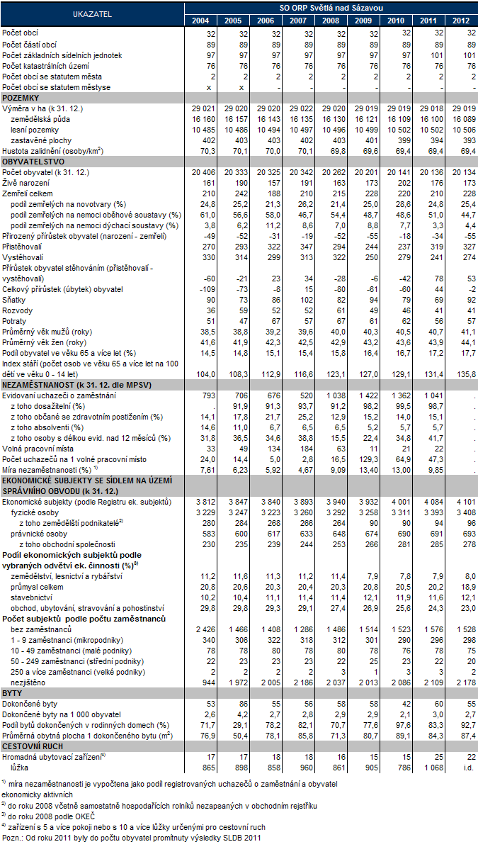 Časové řady - vybrané ukazatele za SO ORP Světlá nad Sázavou