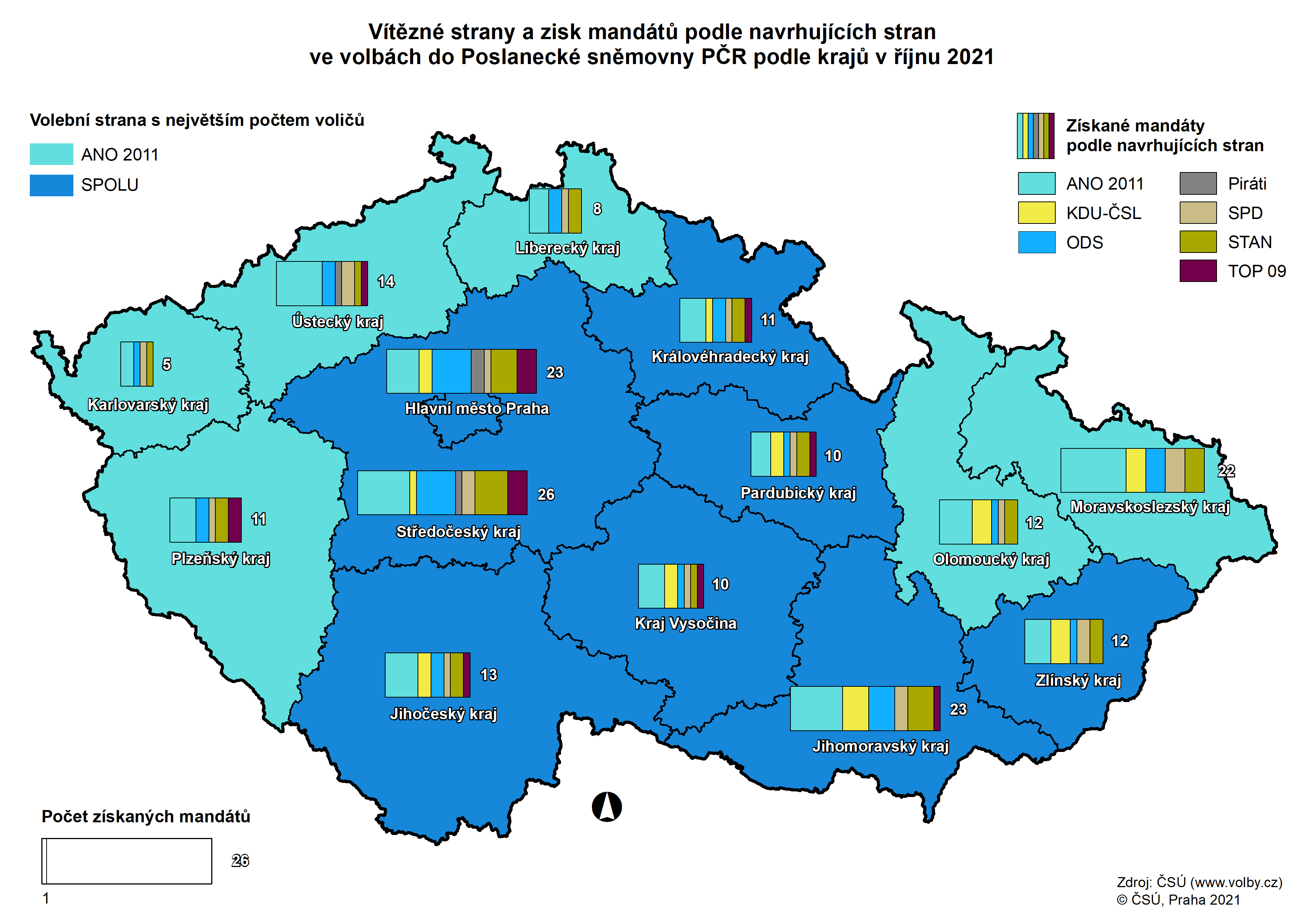 Kartogramy - výsledky voleb do PS 2021