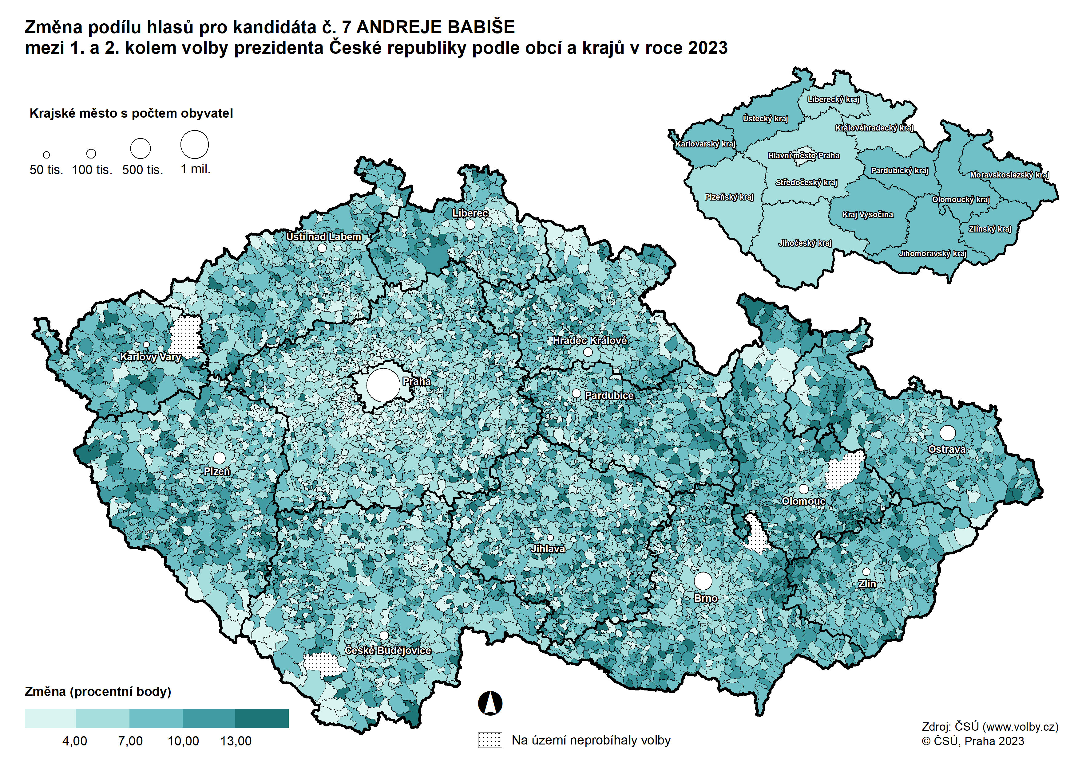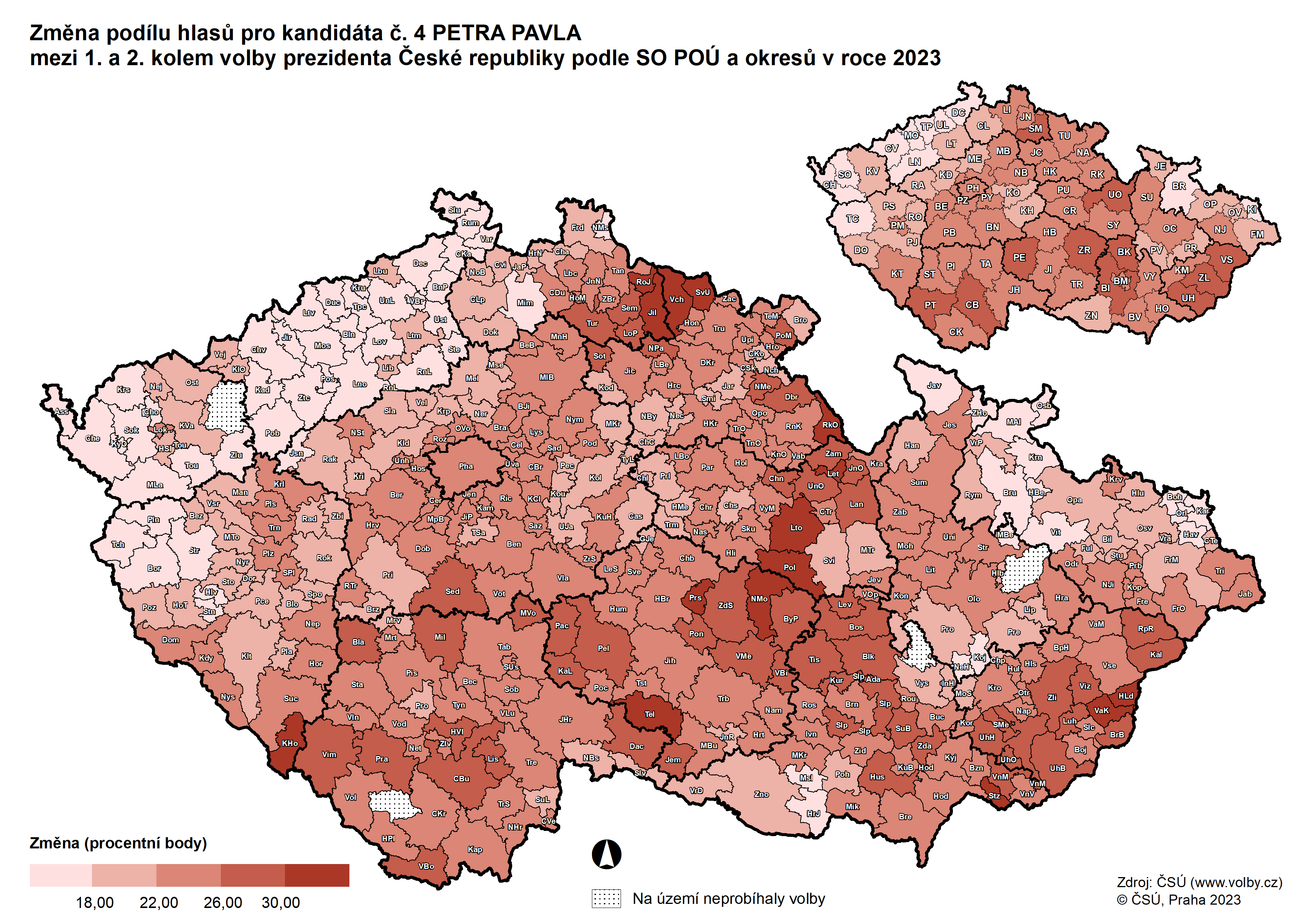 Změna podílu hlasů pro kandidáta mezi 1. a 2. kolem