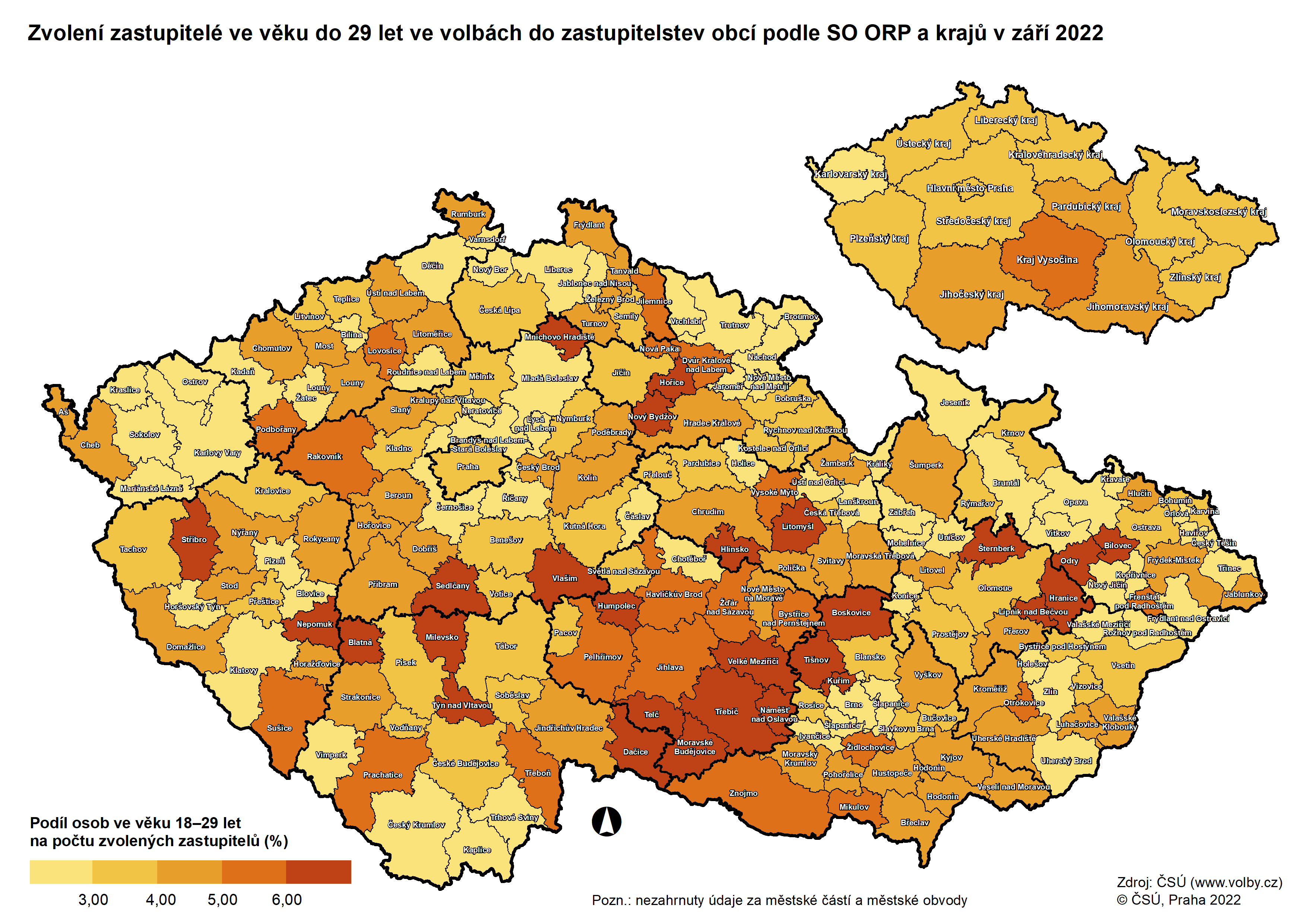 Zvolení zastupitelé ve věku do 29 let podle SO ORP a krajů