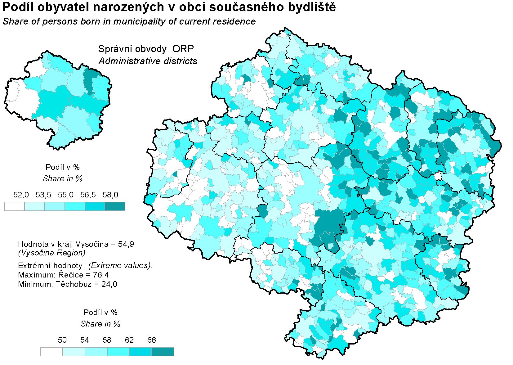 Podíl obyvatel narozených v obci současného bydliště
