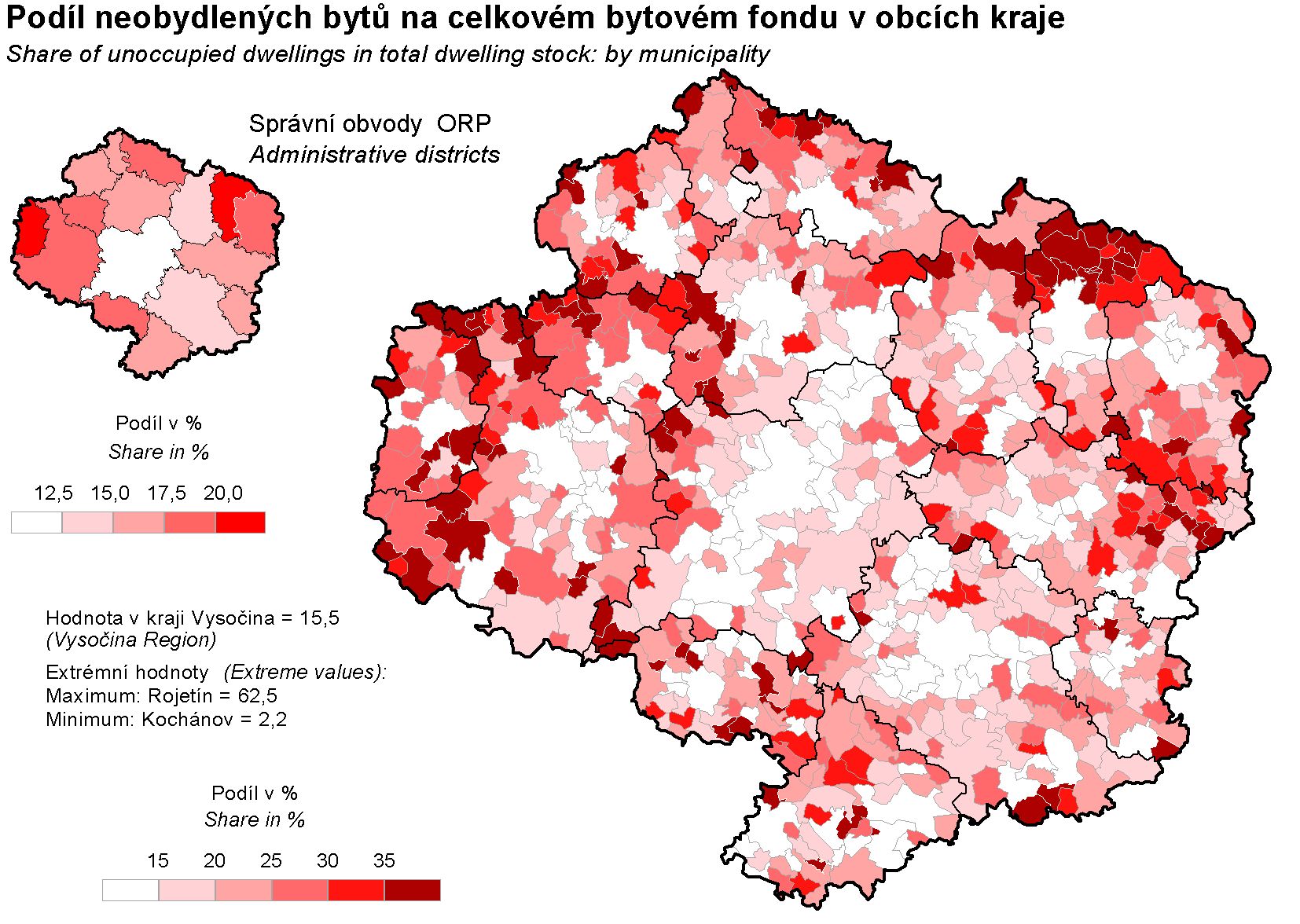 Podíl neobydlených bytů na celkovém bytovém fondu v obcích kraje