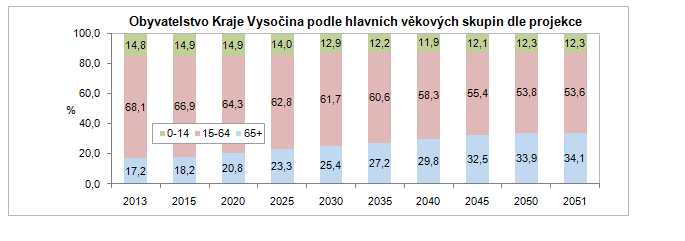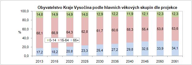Obyvatelstvo Kraje Vysočina podle hlavních věkových skupin dle projekce