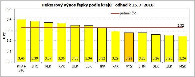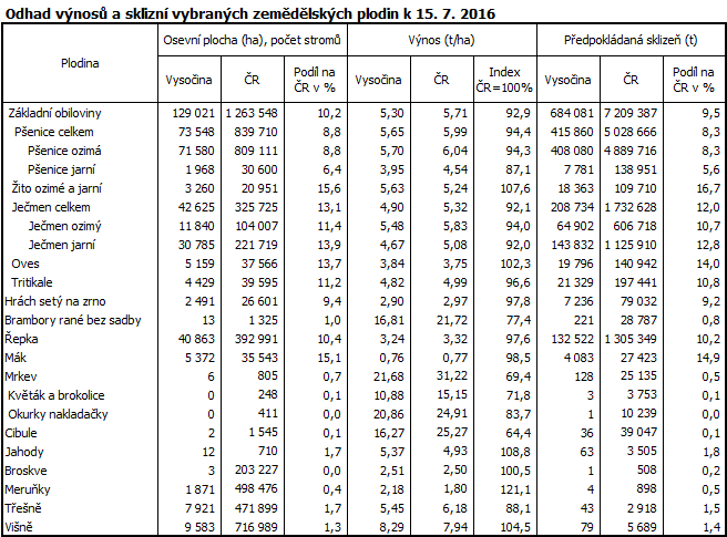 Odhady výnosů a sklizní zemědělských plodin v Kraji Vysočina k 15. 7. 2016