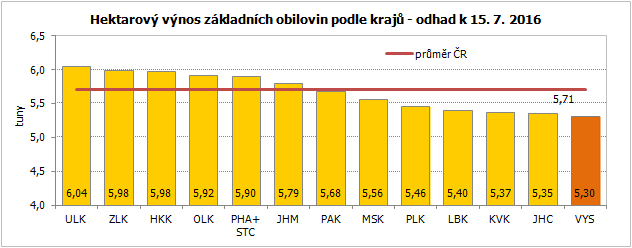 Očekává se , že bude sklizeno přes 684 tis. tun základních obilovin. Při porovnání s loňským rokem je to o 38 tis. tun méně, tj o více než 5 %. Podílí se na tom jak nižší hektarový výnos (-1,4 %), tak i menší osevní plocha (-3,9 %). Hektarový výnos základních obilovin je odhadován na úrovni 5,30 tun, což je o 0,08 tuny méně než bylo sklizeno z jednoho hektaru loni.