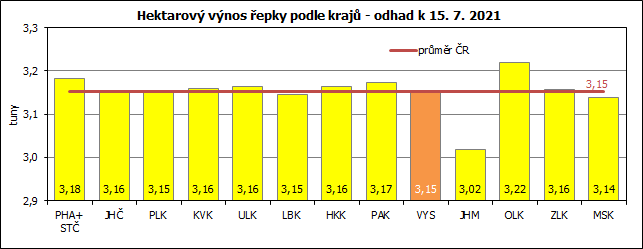 - Odhady sklizně - operativní zpráva - k 15. 7. 2021Odhady sklizně zemědělských plodin za ČR a jednotlivé kraje v ukazatelích: hektarový výnos (v t/ha) a celková sklizeň (propočet z odhadovaného hektarového výnosu a osevní plochy). Porovnání s předchozím rokem.