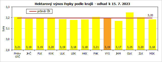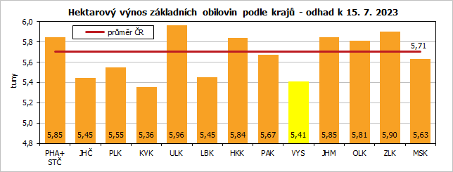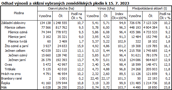 K 15. červenci 2023 zpřesnil Český statistický úřad odhady hektarových výnosů a očekávané sklizně základních druhů obilovin (pšenice, žita, ječmene, ovsa a tritikale), řepky a brambor raných. Zároveň byly oproti předchozím odhadům nově zpracovány odhady produkce hrachu setého a máku.