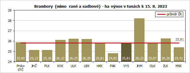 Brambor ostatních (tzn. brambor mimo raných a sadbových) bude sklizeno téměř 138 tisíc tun. Proti předchozímu roku je to ale téměř o čtvrtinu méně, což je způsobeno zejména nižším hektarovým výnosem, který se na Vysočině předpokládá na úrovni celorepublikového průměru 25,81 tun. I tak očekávaná sklizeň brambor na Vysočině bude představovat přibližně 30 % celorepublikové sklizně a v mezikrajském srovnání bude nejvyšší.