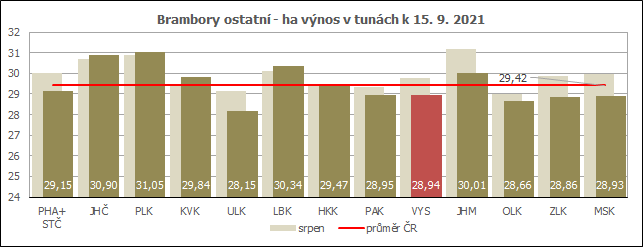 Kraj Vysočina je v rámci republiky nejvýznamnějším producentem brambor. Jejich sklizeň dosáhne výše 222 tis. tun při průměrném výnosu 28,94 t/ha. Celková sklizeň brambor je o 8,9 % nižší než v loňském roce a Vysočina se podílí 33 % na produkci této komodity v celé České republice.